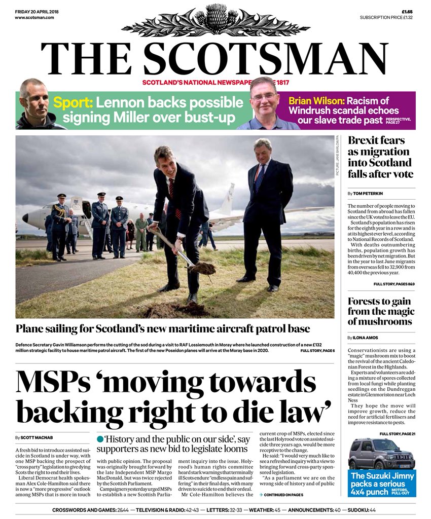 FRIDAY'S THE SCOTSMAN: MSPs moving towards right to die law #tomorrowspaperstoday #bbcpapers (via @hendopolis)pic.twitter.com/PxT9BUTY9f