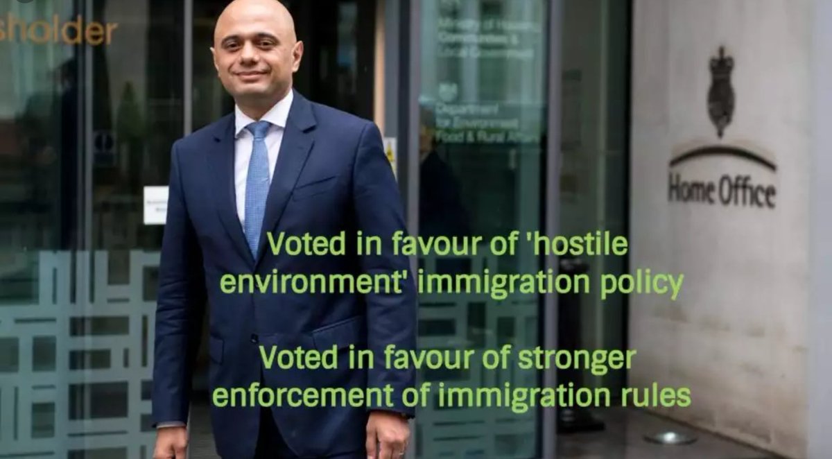 Sajid Javid's voted for every element of 'hostile environment, created and drawn up by the current Prime Minister and supported by the previous Home Secretary. As the founder of the National Health Service Aneurin Bevin said “Tories are lower than vermin” that will never change!