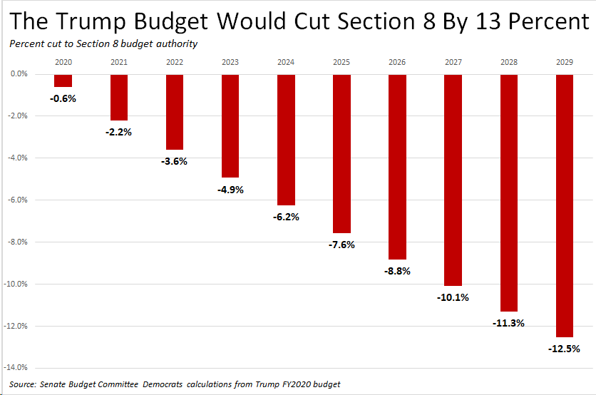 Section 8 helps over 3 million households afford rent. It is already drastically underfunded - roughly only 1/4 of eligible people are on it. Trump would cut it by 13 percent, kicking struggling families out into the streets.pic.twitter.com/Lx2veYH1aR