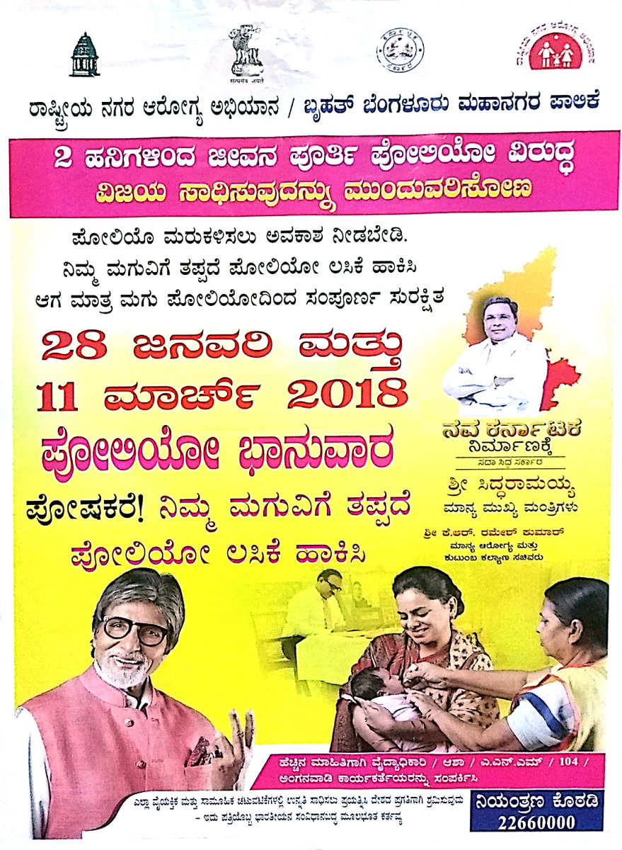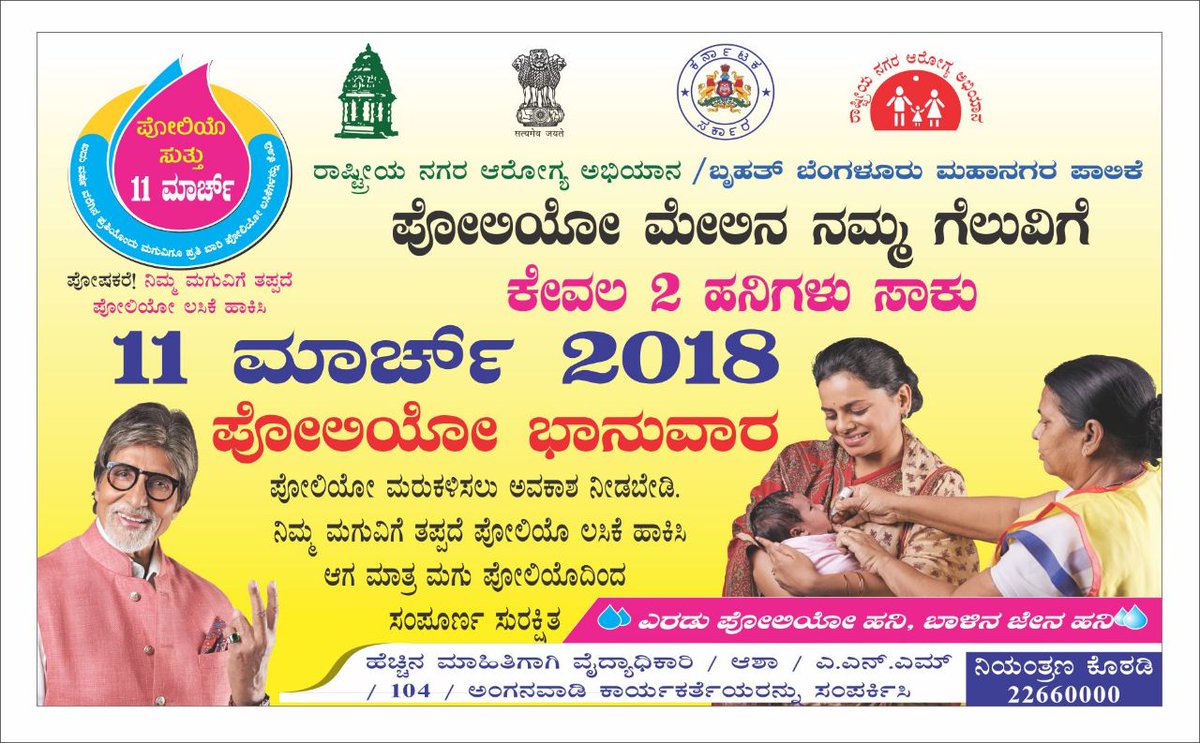 Appeal to all the Citizens of Bengaluru to make pulse polio drive on 11/03/2018 a success to keep India free from Poliomyelitis, Pulse polio drops available at all Govt/Pvt Hospitals, Schools etc.pic.twitter.com/aNs24BoMKH