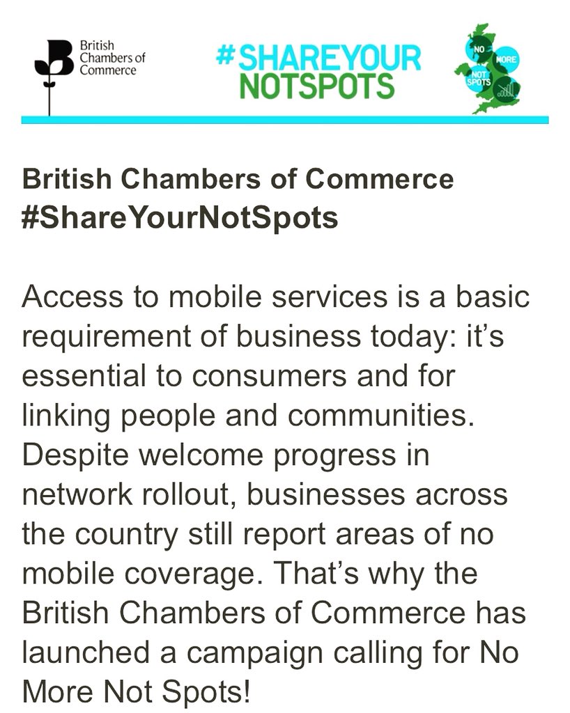 The BCC recently launched its No More Not Spots campaign to improve mobile coverage across the country. Read our blog to find out how people and businesses across the UK can get involved: https://bit.ly/2GkLHUH pic.twitter.com/GRRfF46pR7