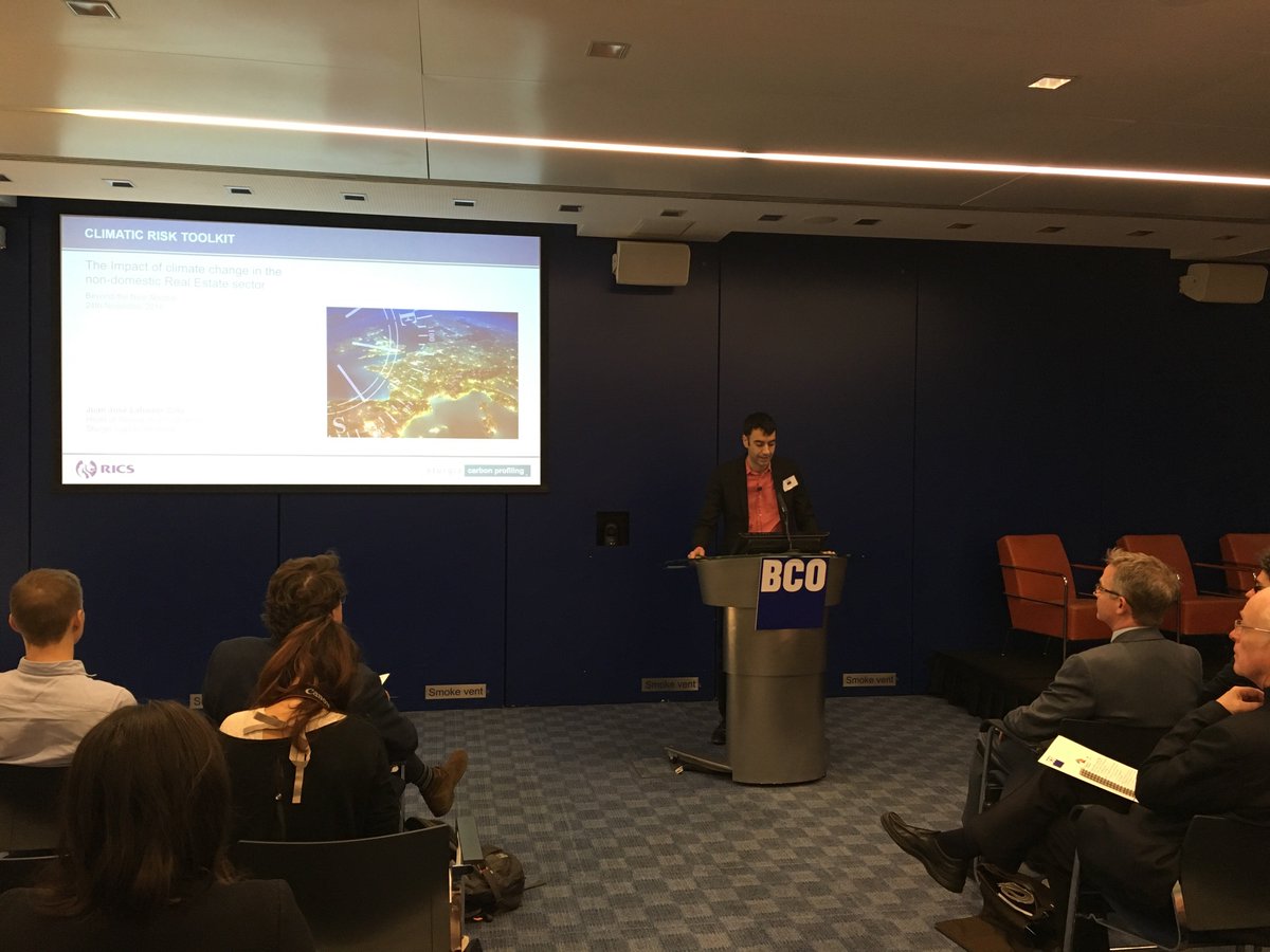 How to predict & manage #climatechange risk using #RICS Climate Risk Tool -Juan Lafuente @CarbonProfiling #bcoevents http://ow.ly/hGNS306sOvk pic.twitter.com/3EYMM2dDJ8