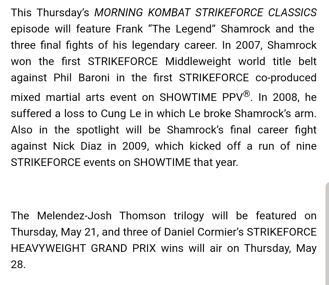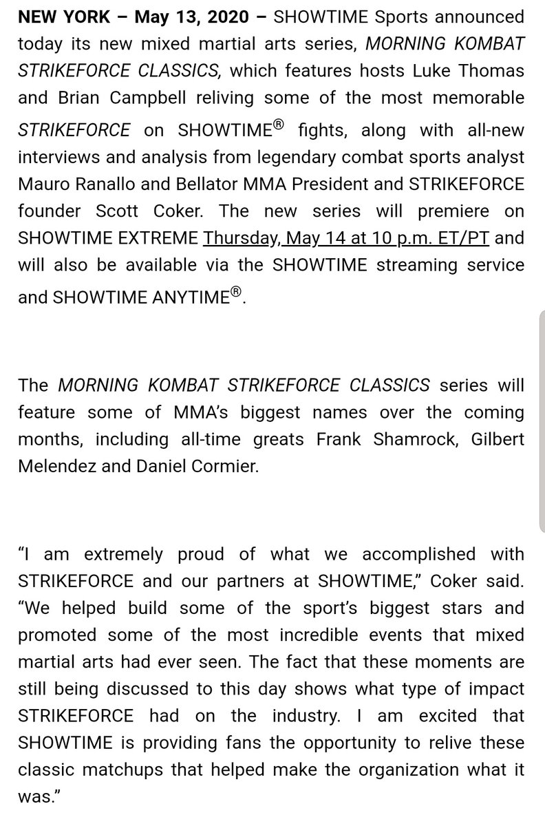 #MorningKombat Strikeforce Classics on@Showtime Extreme as@lthomasnews & I kick it old school with a pair of great guests ...https://twitter.com/shosports/status/1261001211878268931 …