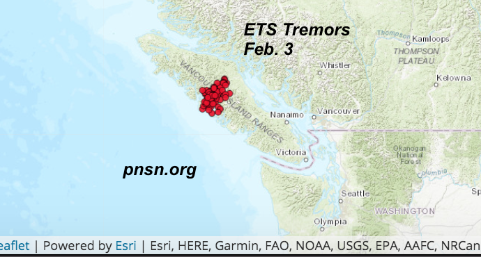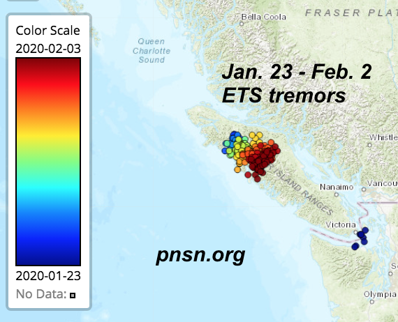 Tiny ETS tremors (not felt) continue on north-central