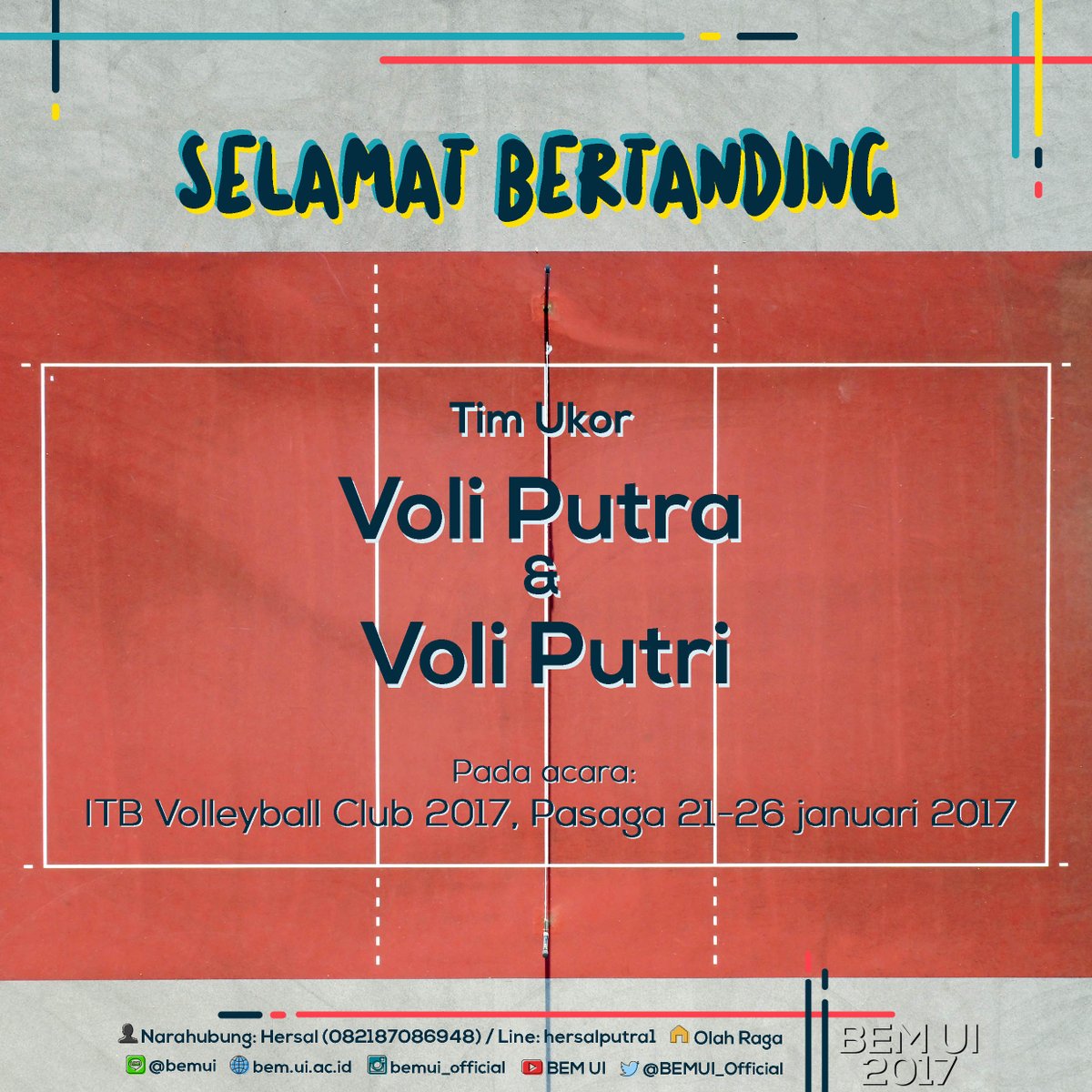 Dukung teman-teman Ukor Voli, yuk! Departemen Olahraga BEM UI 2017 Kolaborasi Menginspirasipic.twitter.com/Ul6xVHanRZ