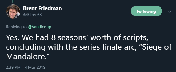 @BFree63 #ADistantEcho was even better than #TheBadBatch. That Anakin/Rex/Padme/Obi-Wan scene really hit me hard. Hoping to see more of whatever episodes we aren't getting this season you had a hand in writing at some point! #TheCloneWars