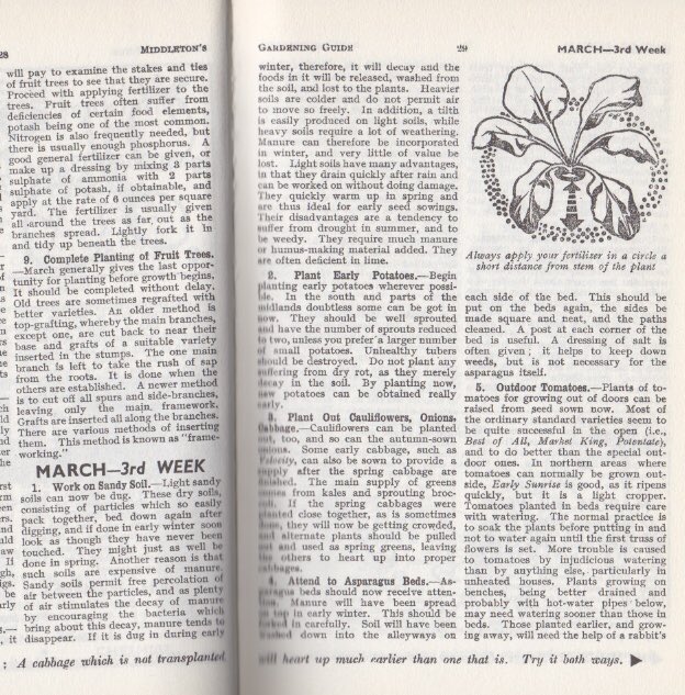 Some more top tips from Mr Middleton, Surbiton resident, Gardening Guru & pioneer of the ‘Dig for Victory’ campaign for WW2. Here’s what the third week of March offers