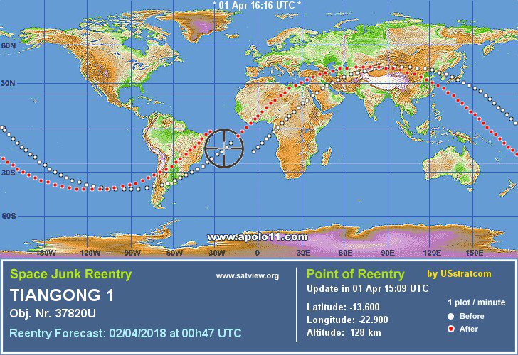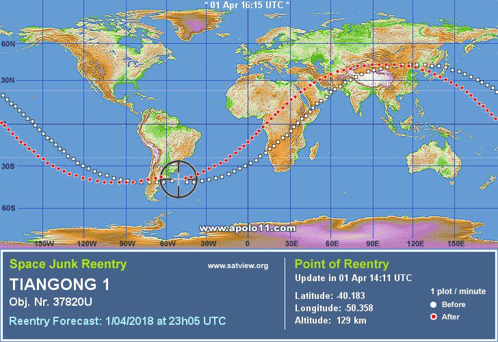 Gravity is taking hold on the dead satellite, will start to catch more atmosphere and break apart in the coming hours...https://twitter.com/therogue_astro/status/980490790349795328 …