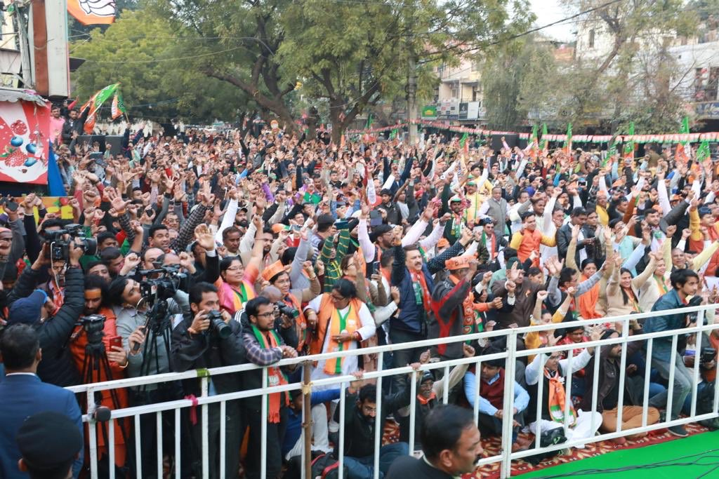 लोधी रोड, दिल्ली में आयोजित जनसभा में सम्मिलित होकर दिल्ली वासियों से केजरीवाल के झूठे वादों और मोदी सरकार की जनकल्याणकारी नीतियों के बीच चुनाव करने की अपील की। यह चुनाव स्वच्छ, स्वस्थ, सुंदर, सुरक्षित एवं विकसित दिल्ली को समर्पित होना चाहिए।pic.twitter.com/RJd8WFzwVh