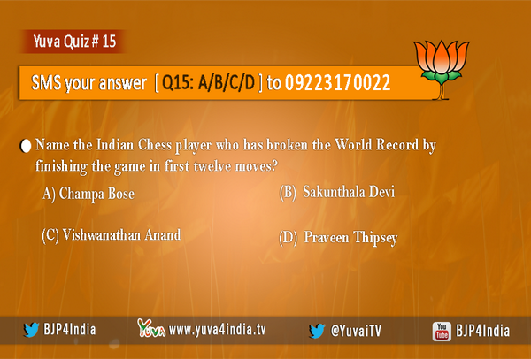 SMS your answer [Q15: A/B/C/D] to 09223170022. #YuvaQuiz #India #Quizpic.twitter.com/KrTizNgnxu