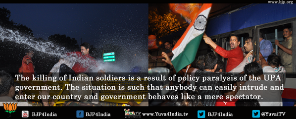 #BJYM protest demonstration against killing of Indian soldiers. Read details at http://bit.ly/177A5Z1 .pic.twitter.com/DENN23Jx4v