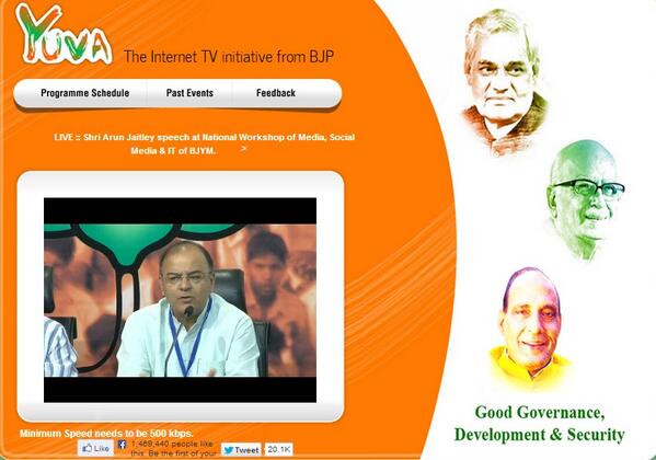 Shri Arun Jaitley addressing to #BJYM participants at the workshop, watch LIVE at http://yuva4india.tv .pic.twitter.com/D6cxw88jZh