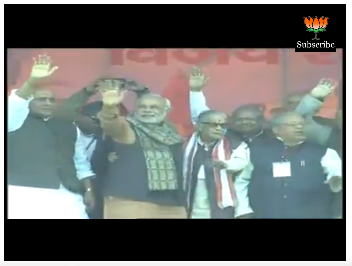 Shri @narendramodi & Shri @BJPRajnathSingh reaches to the stage, watch LIVE at http://yuva4india.tv . #NaMoInKashipic.twitter.com/7hE2zFN3FC