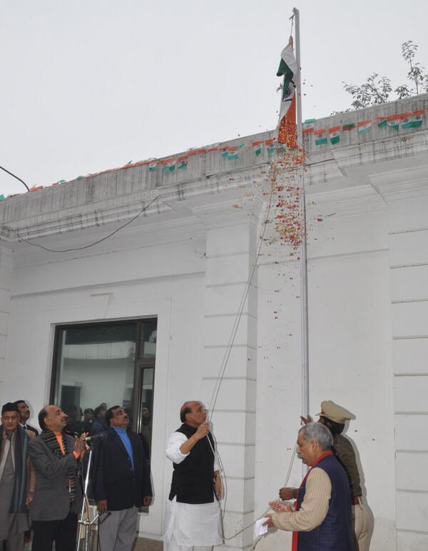 Shri @BJPRajnathSingh unfurls the national flag at BJP Headquarters. #HappyRepublicDaypic.twitter.com/vrKuH1o8up