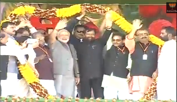 Shri @narendramodi along with senior leaders. LIVE at http://yuva4india.tv #NaMoInBiharpic.twitter.com/b8pjJ0w634