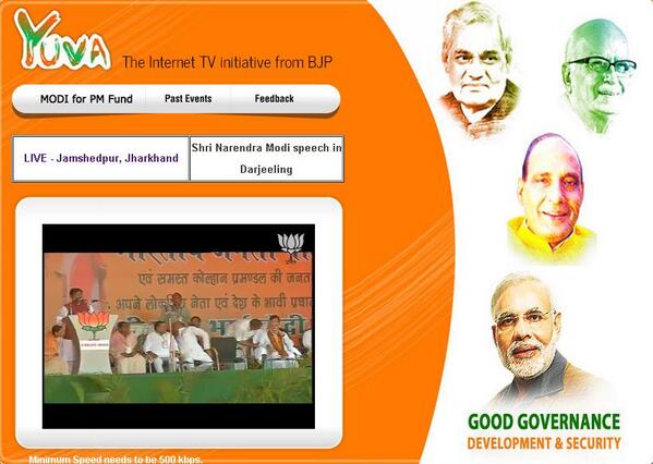 Shri Arjun Munda is speaking now. Watch LIVE at http://yuva4india.tv . #WeWantModipic.twitter.com/RUQE83L871
