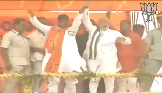 Shri @narendramodi arrives at the stage. Will shortly address rally in Siwan. LIVE at http://yuva4india.tv pic.twitter.com/gCcbfXFCla