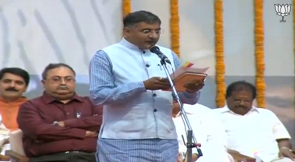 Shri Rajnikant Somabhai Patel taking oath. Watch LIVE at http://yuva4india.tv pic.twitter.com/cE9F95q8hd