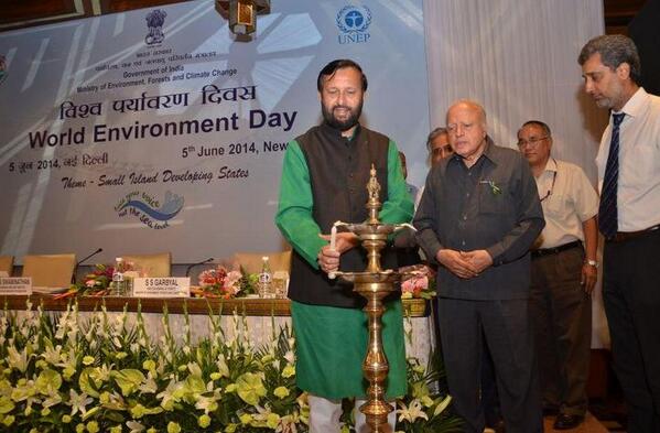 Shri @Prakashjavdekar lighting the Ceremonial lamp at #WorldEnvironmentDay celebrations.pic.twitter.com/VFNhuJSiRq