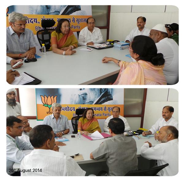 Union Minister Dr. Najma Heptulla listening to the public grievances at BJP HQ - https://www.youtube.com/watch?v=x2yUqeCwQu0 …pic.twitter.com/ed4ViqhGn0