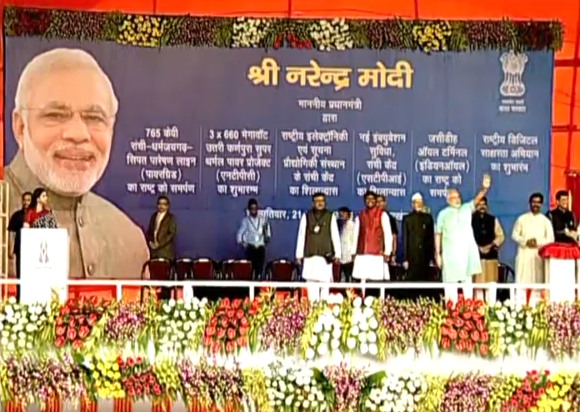 PM Shri @narendramodi arrives at the venue to inaugurate 765kV Transmission Line. LIVE at http://yuva4india.tv .pic.twitter.com/L0cdSTommS