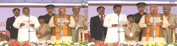 Shri Vikram Thekedar and Shri Krishan Bedi taking oath as a Cabinet Ministers in Haryana - http://yuva4india.tv .pic.twitter.com/U82loCnn3H