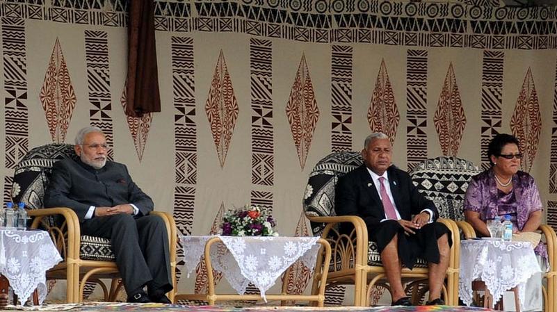 PM Shri @narendramodi during the Traditional Welcome Ceremony at Albert Park, Suva (Earlier Today).pic.twitter.com/jA90O45rbi