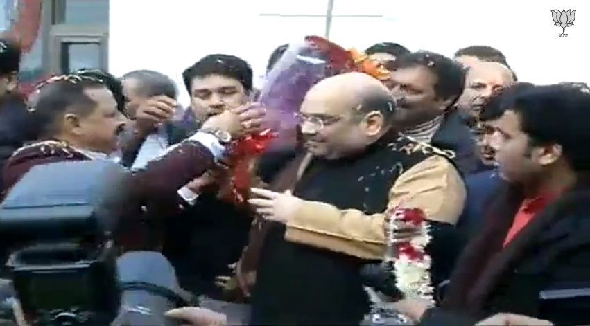BJP workers welcome Shri @AmitShahOffice at BJP HQ. LIVE at http://yuva4india.tv || https://www.youtube.com/watch?v=Xo7hbPJ2cT4 …pic.twitter.com/8giQyV8FKw