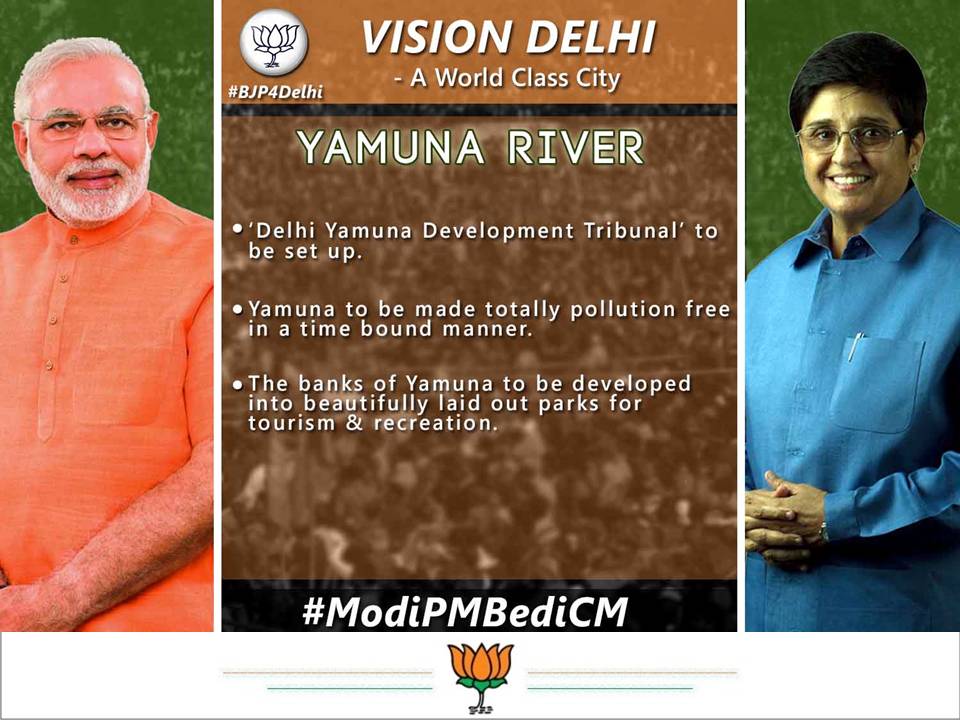 #ModiBediVision : Yamuna to be made totally pollution free in a time bound manner. #ModiPMBediCMpic.twitter.com/sIw7PHwRbP