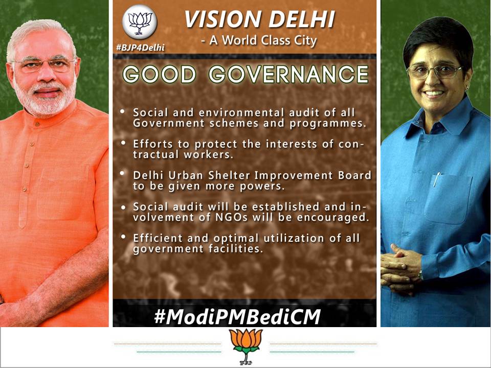 #ModiBediVision : Municipal Corporations of Delhi to be delegated more powers. #ModiPMBediCMpic.twitter.com/B9r3Yh46Eb
