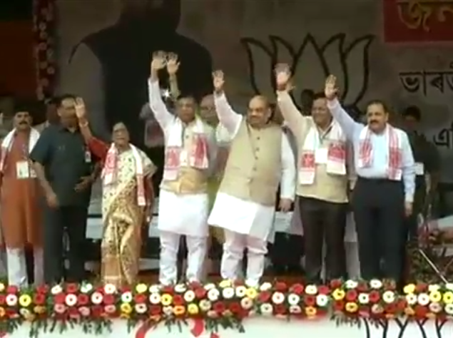 Shri @AmitShahOffice has arrived to address public meeting at Veterinary College Ground, Khanpara, Guwahati.pic.twitter.com/7xDww9Uiyc