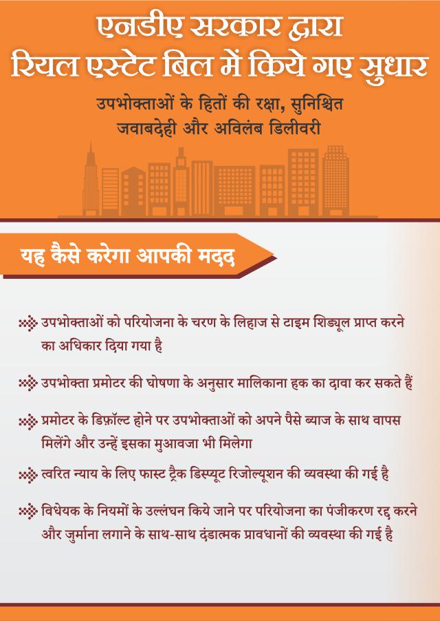एनडीए सरकार द्वारा रियल एस्टेट बिल में किये गए सुधार।