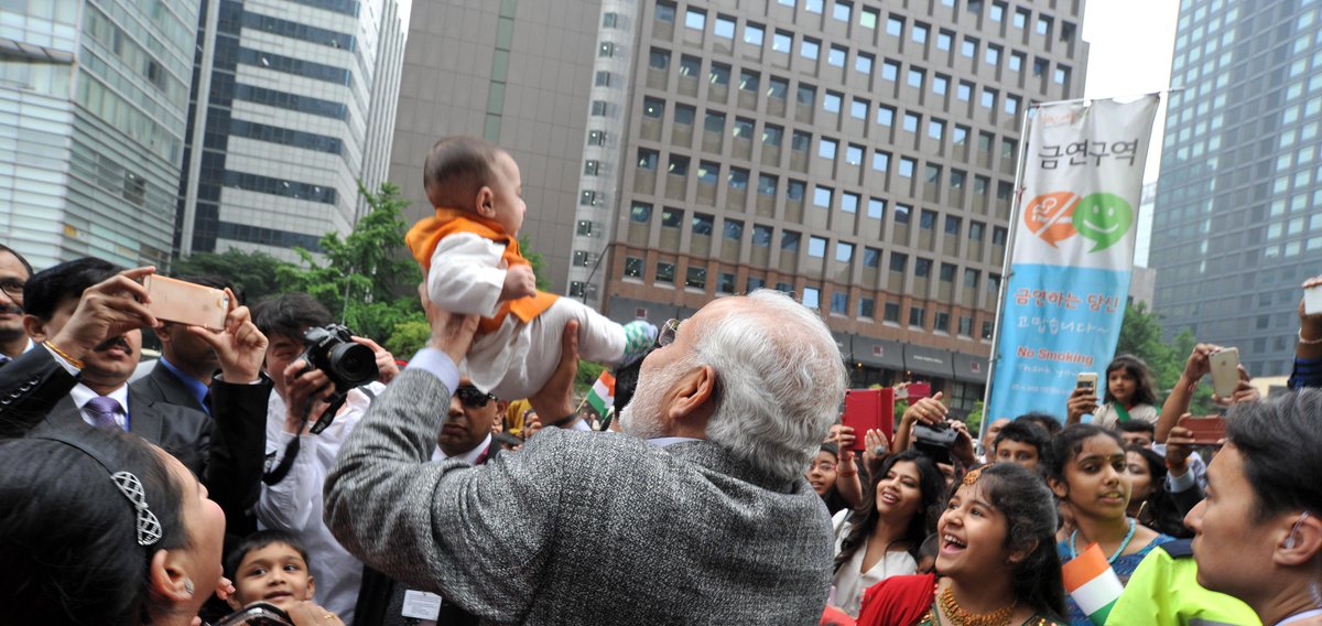 Glimpse: Prime Minister Shri @narendramodi at the Cheonggyecheon Stream, in Seoul, South Korea. #ModiInSouthKoreapic.twitter.com/Xgaa2glz0i