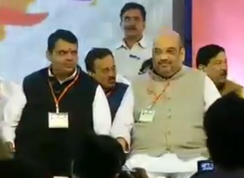LIVE: BJP President Shri @AmitShahOffice & Maharashtra CM Shri @Dev_Fadnavis at BJP State Executive Meet.pic.twitter.com/ppy40Oj64F