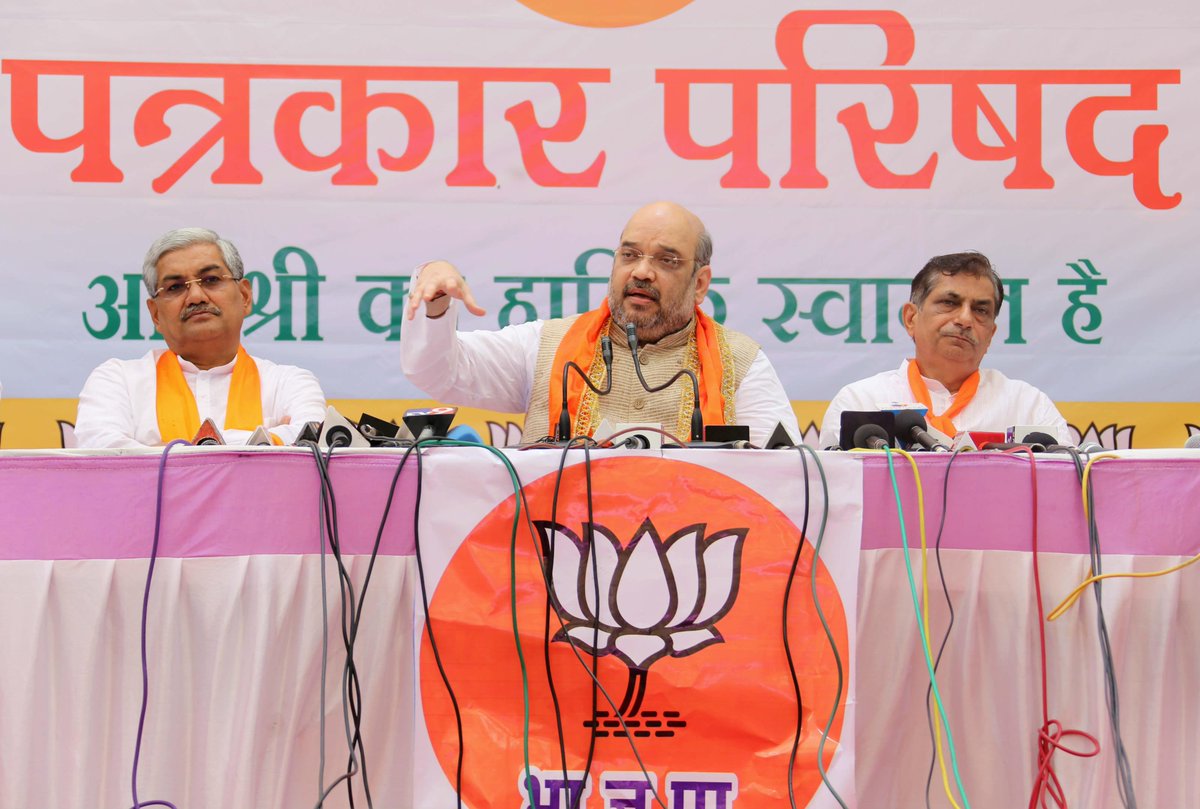 Shri @AmitShahOffice addressing a press conference on 1 year of Modi govt. in Surat earlier today. #SaalEkKaamAnekpic.twitter.com/jsEjESCBJ4