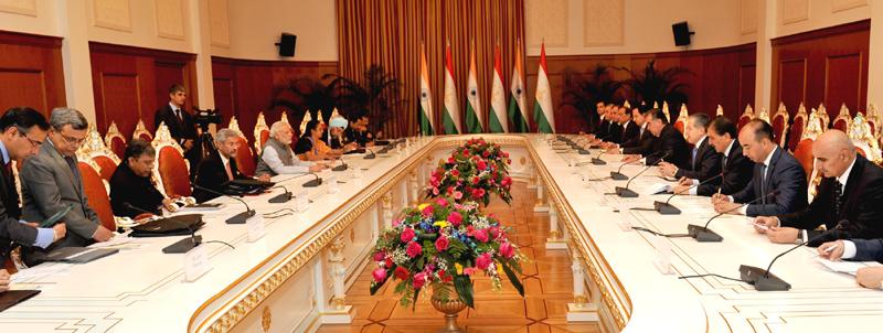 PM @narendramodi & the President of Tajikistan at the Delegation Level Talks, at the Qasr-e-Millat, in Tajikistan.pic.twitter.com/If7NZBRHHt