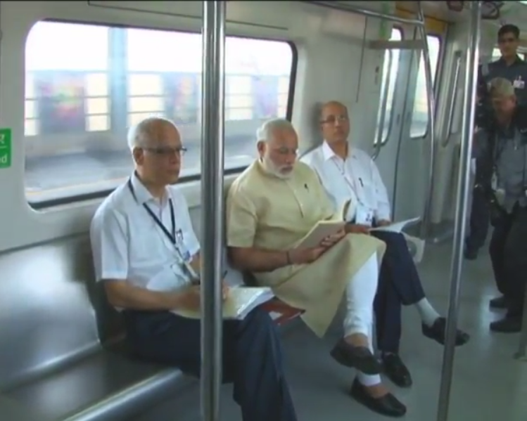 PM, Shri @narendramodi travelling in #DelhiMetro, will shortly inaugurate Badarpur-Mujesar Metro Line in Faridabad.pic.twitter.com/SZHTw7NuAk