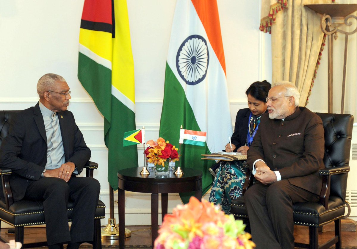 PM @narendramodi meets the President of Guyana, Mr. David Arthur Granger, in New York on 24 Sep 2015. #ModiInUSApic.twitter.com/hbDUfiuXdt
