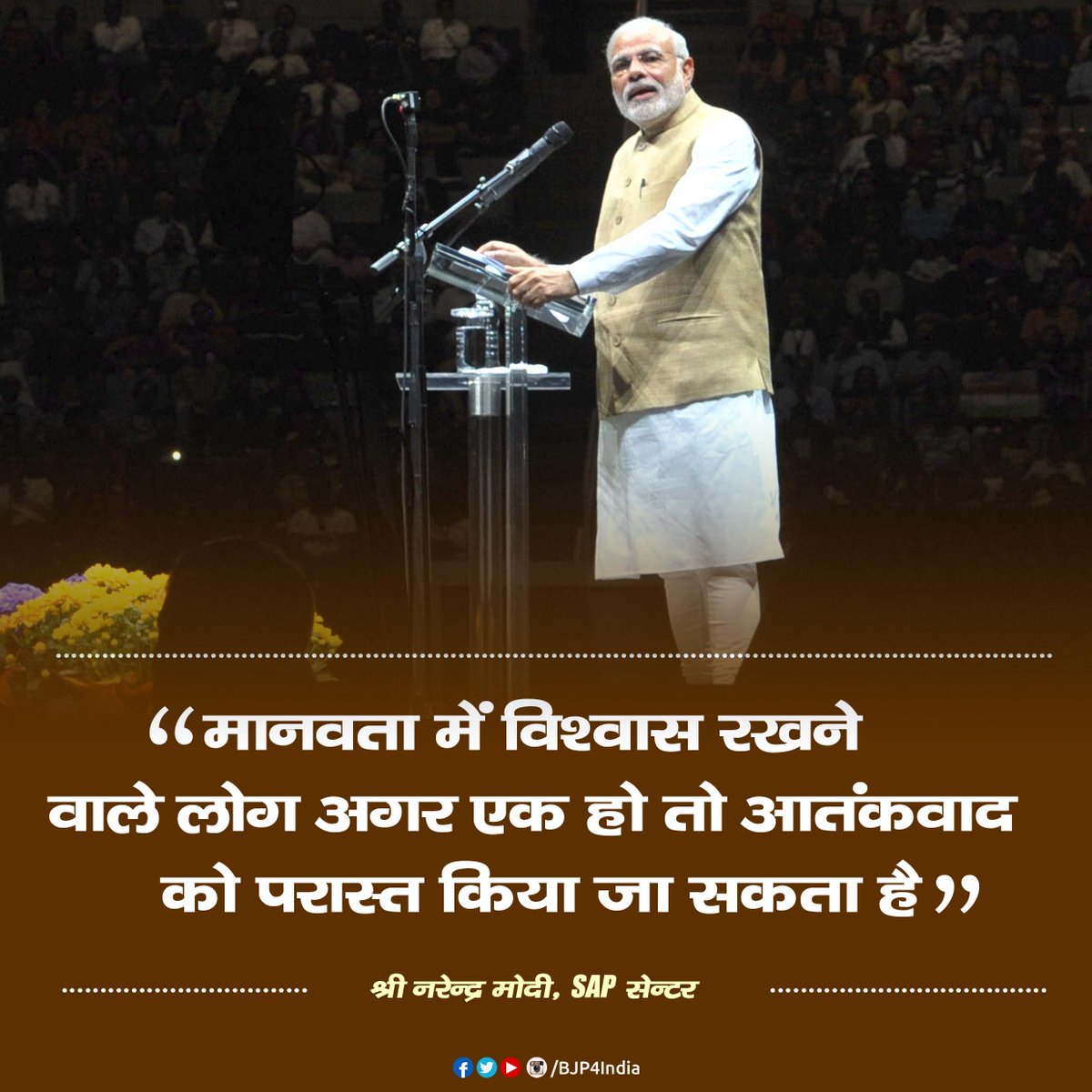 "मानवता में विश्वास रखने वाले अगर एक हो तो आतंकवाद को परास्त किया जा सकता है" #ModiInSiliconValleypic.twitter.com/RvxkPaPHKa