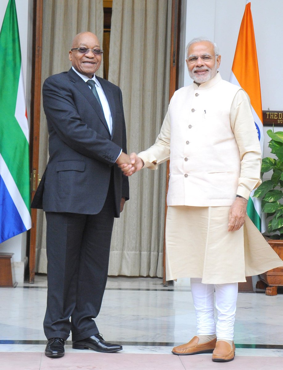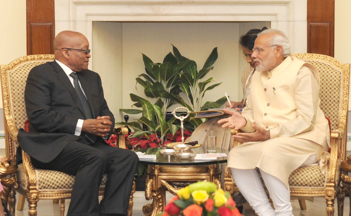 PM @narendramodi meeting the President of South Africa, Mr. Jacob Zuma, during @indiafrica2015 in New Delhi.pic.twitter.com/JDj1TcWXr1