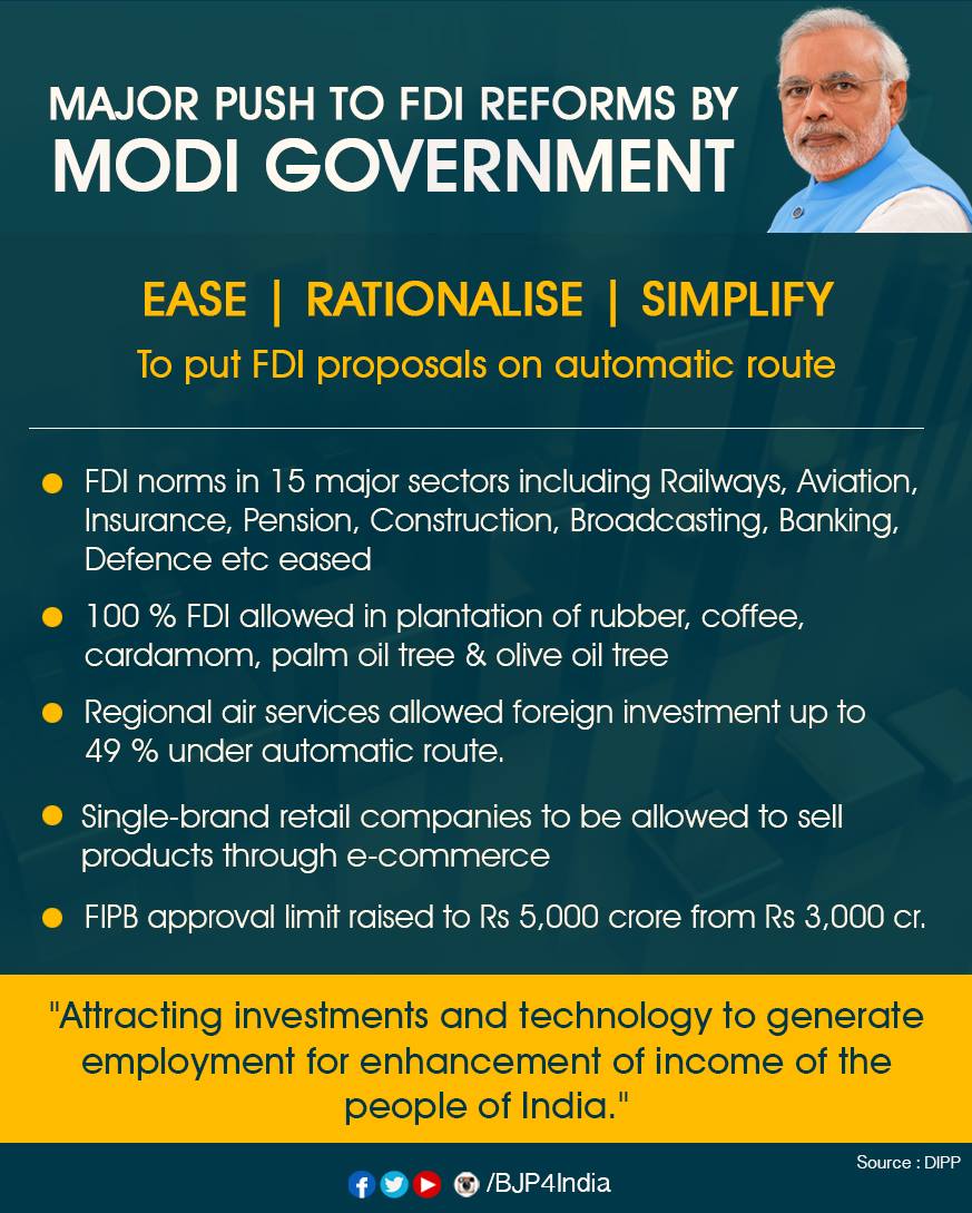 Modi government has brought major #FDIReforms in 15 key sectors for Economic Development.pic.twitter.com/nFKeFMntFp