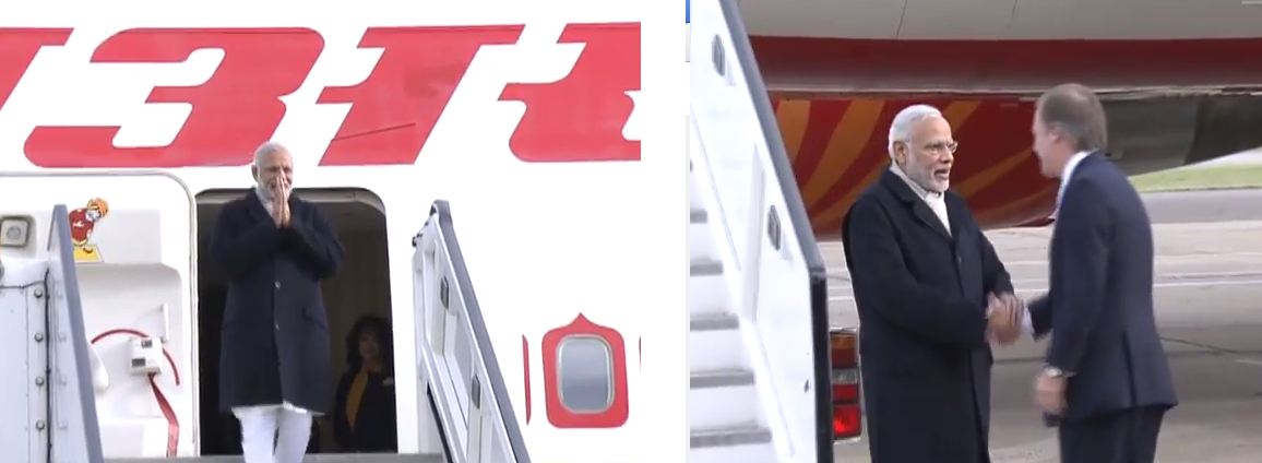 PM @narendramodi lands at London’s Heathrow Airport on a three day bilateral visit. #ModiInUKpic.twitter.com/FHx7iBG6Gq