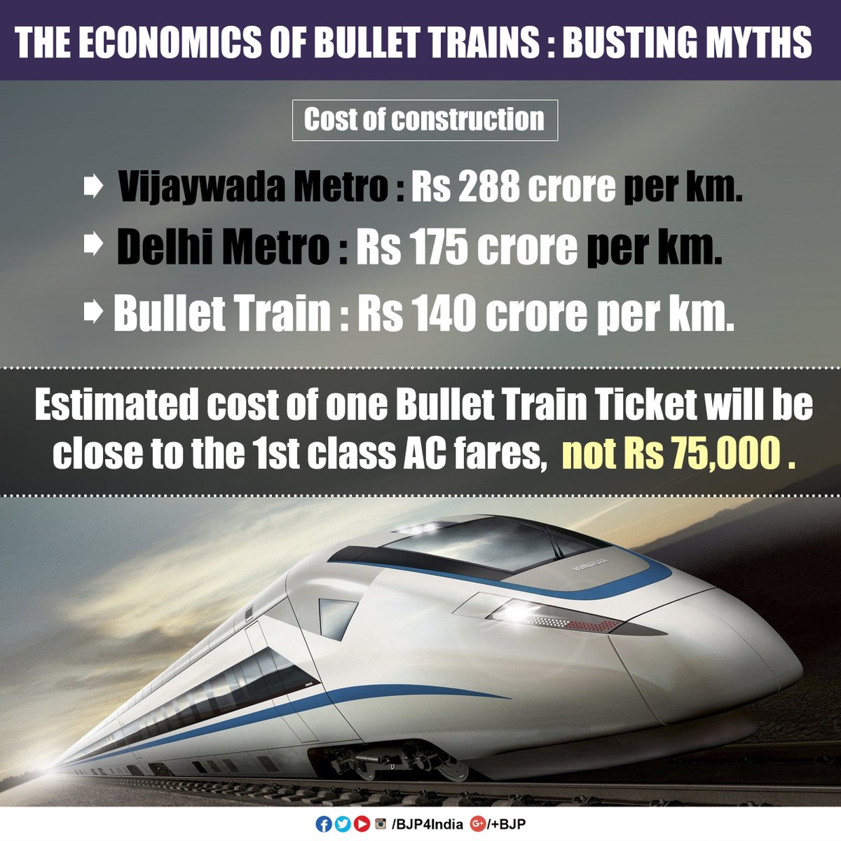 The estimated cost of construction of Bullet Train is Rs140 crore/km, lower than existing Metro projectspic.twitter.com/gt9mUq6mPf