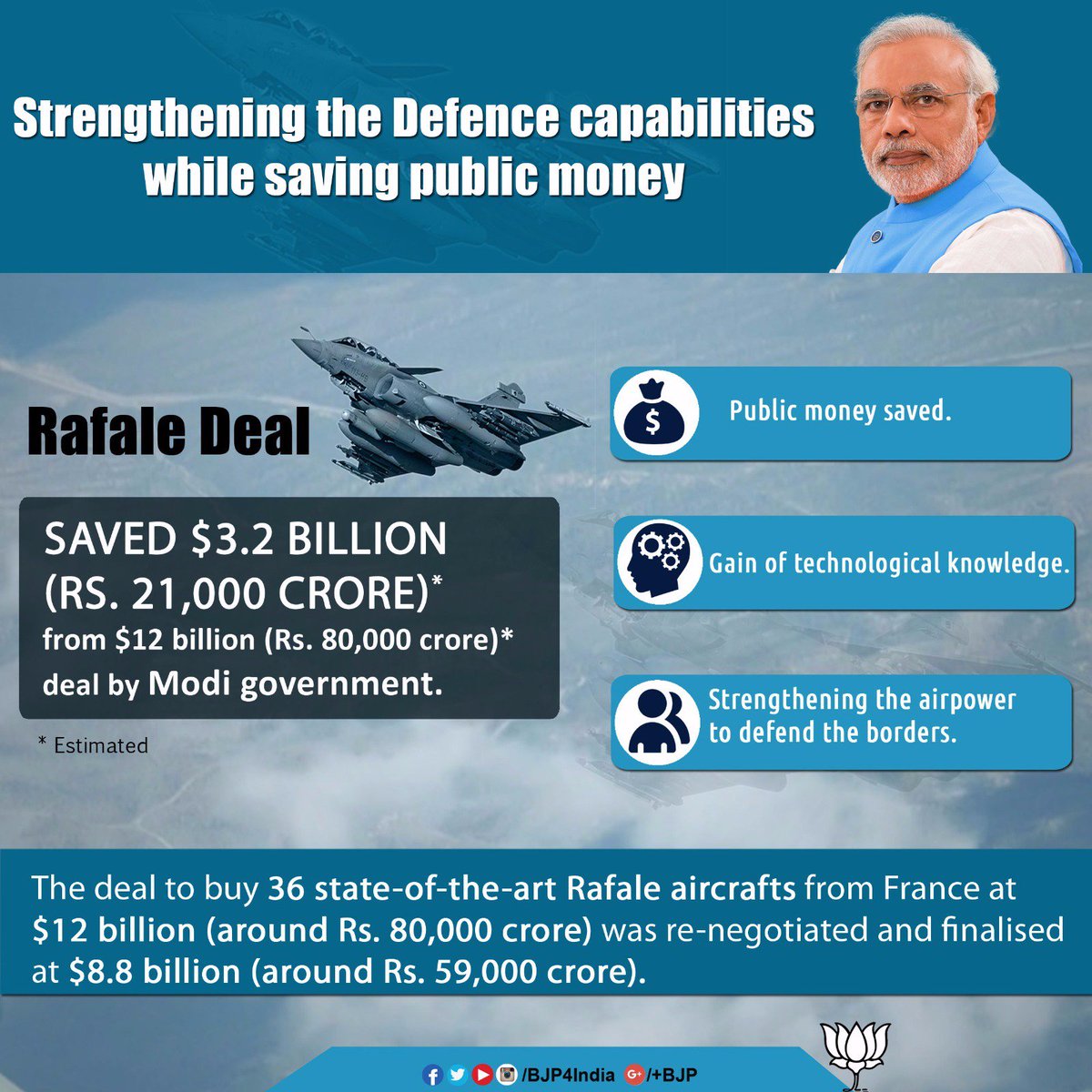 Rafale deal: 'Strengthening defence capabilities'- Modi government saved $3.2 billion out of $12 billion deal.pic.twitter.com/gtegCAXxF8