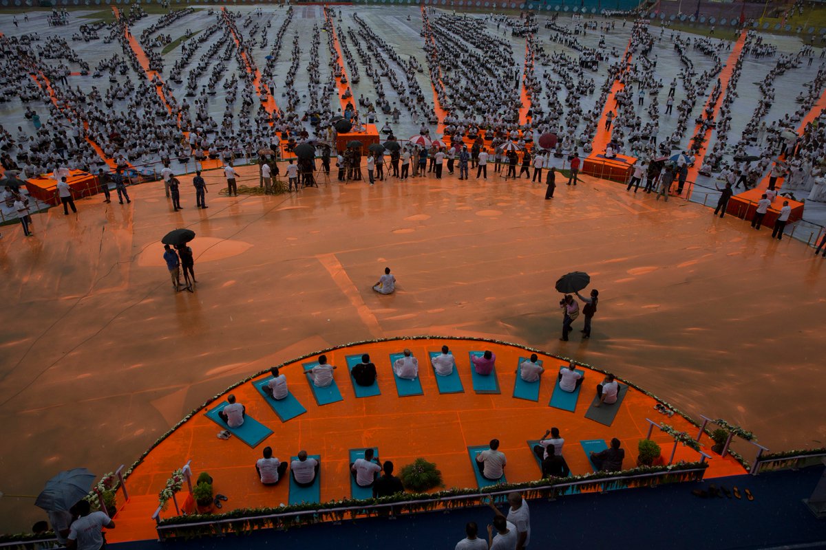 HM Shri @rajnathsingh performing Yoga at KD Singh Babu stadium in Lucknow on International #YogaDaypic.twitter.com/lk9kg5knSS