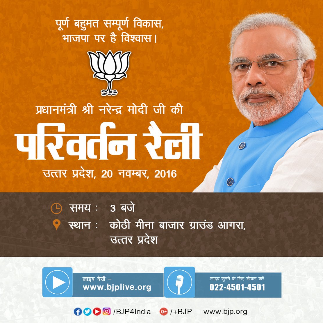 पीएम मोदी थोड़ी देर में आगरा में परिवर्तन रैली को संबोधित करेंगे। लाइव देखें http://www.bjplive.org  पर || सुनें 02245014501 #NamoInAgrapic.twitter.com/2ayZnzDXXZ