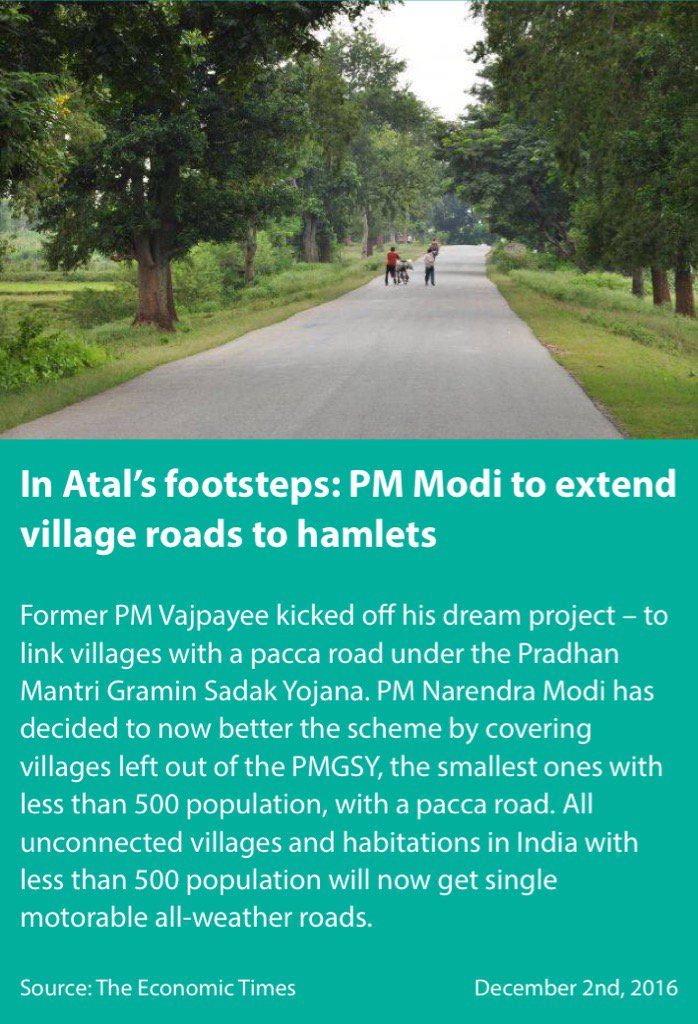 In Atal’s footsteps: PM Modi to extend village roads to hamlets http://economictimes.indiatimes.com/news/politics-and-nation/in-atals-footsteps-pm-modi-to-extend-village-roads-to-hamlets/articleshow/55736901.cms?utm_source=contentofinterest&utm_medium=text&utm_campaign=cppst … via NMApppic.twitter.com/vGAKjN7Vup
