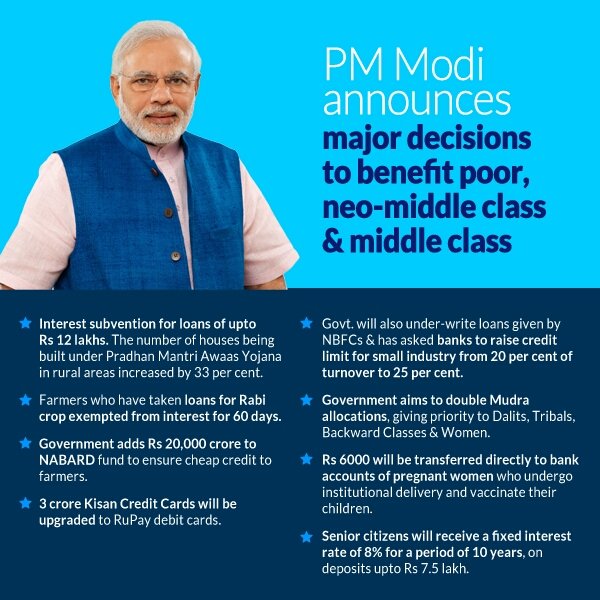 PM @narendramodi announces major decisions to benefit poor, neo-middle class & middle class. #IndiaWithPMModipic.twitter.com/HSRlQcLcOq