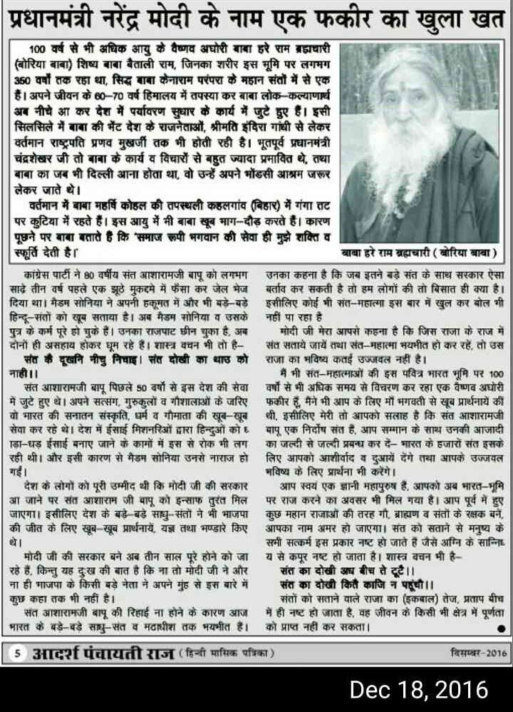 "संत सताये तीनो जाये तेज, बल और वंश" - 'यही समझाया @narendramodi जी को बोरिया बाबा ने। #LetterToPM @timesofindia