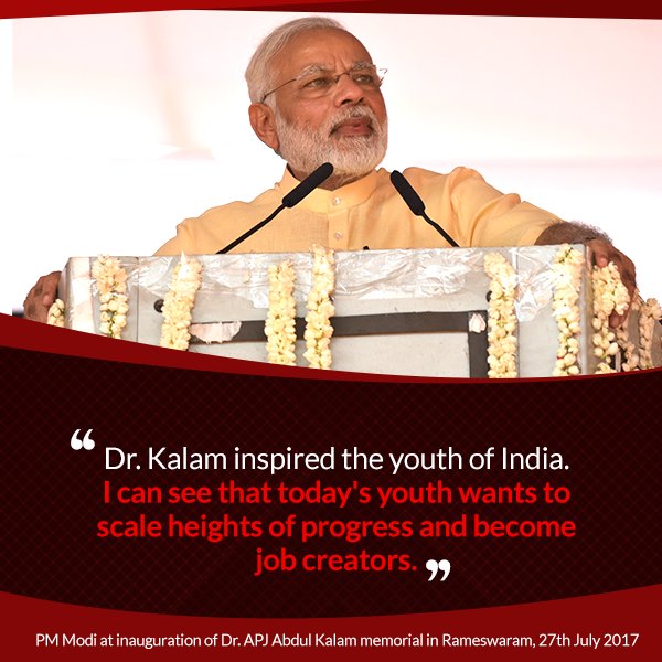 Dr. Kalam inspired the youth of India. I can see that today's youth wants to scale heights of progress and become job creators: PMpic.twitter.com/OAFVSa7uw9